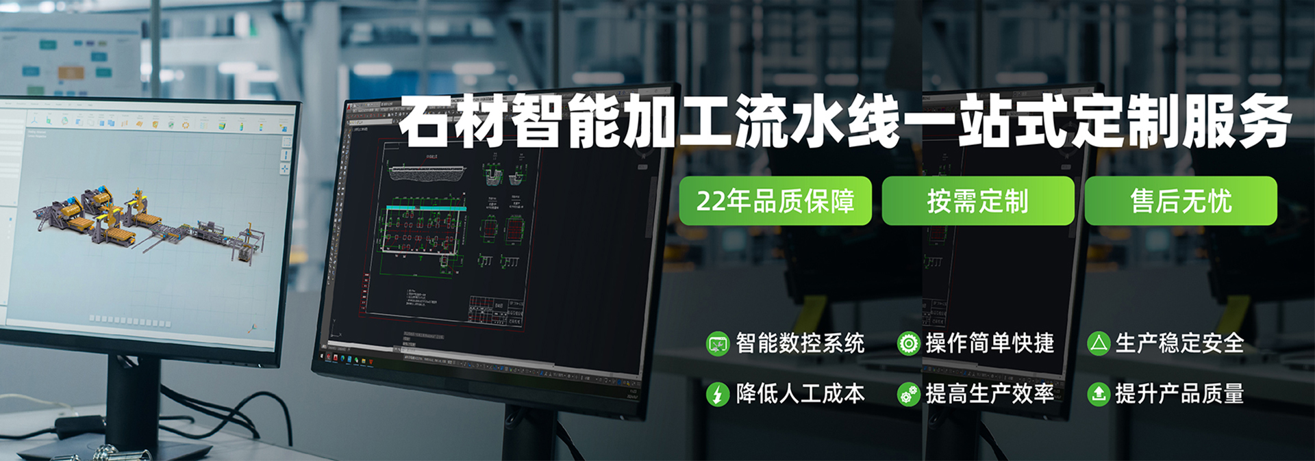 致力(lì)於幫助(zhù)全球的石材加工企業(yè)進行生產(chǎn)線的一體化設(shè)計、數字化改造、智能化轉型,以數字(zì)技術賦能石材加工企業高質量發展。